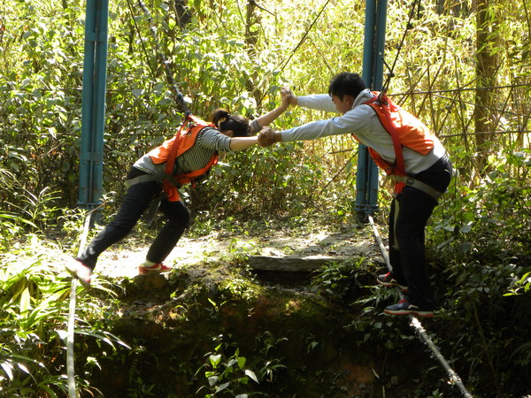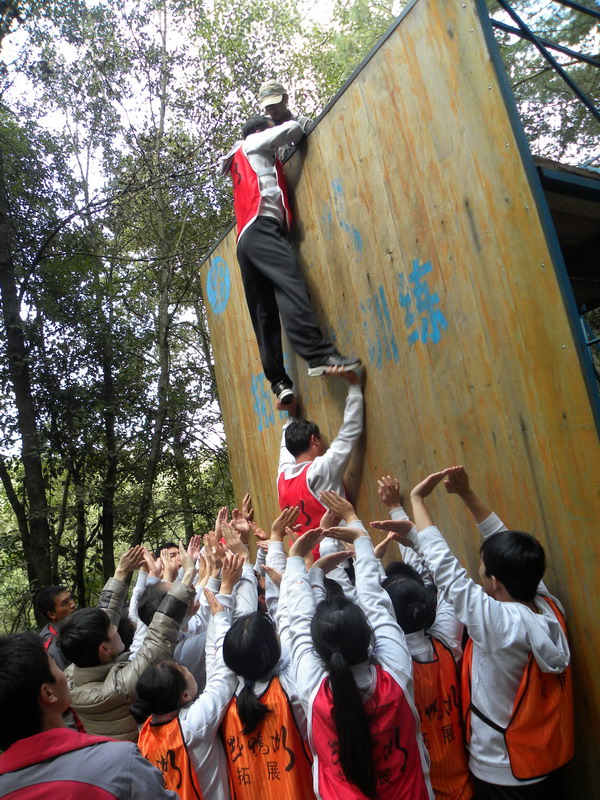 •  20121134日,昆明野鴨湖拓展訓(xùn)練基地那里留下了我們成長的足跡。在各項(xiàng)訓(xùn)練活動中,歌聲與微笑同在,汗水與淚水交織,演繹著敢于擋當(dāng)、不言放棄,奮力拼搏、突破自我,彼此信任、緊密團(tuán)結(jié)的真實(shí)故事,深深打動了每一個(gè)人。最特別的還是徒手翻越4.5高的團(tuán)隊(duì)墻,因?yàn)槟抢锊粌H僅有大家奮力向上攀爬劃下的印跡,更多的攀爬過程中緊密配合的汗水及動人的淚水。大家真正體會到了“責(zé)任”的份量與團(tuán)結(jié)的力量。我們永遠(yuǎn)都是一個(gè)團(tuán)隊(duì)!